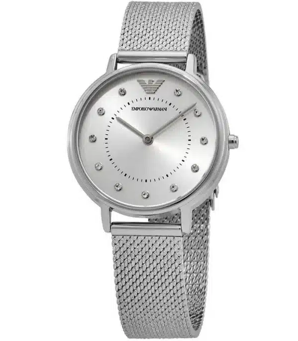 Montre pour Femme de la Marque : Emporio Armani – Référence : AR11128 – Fonctionnalités : Analogique – Mouvement : Quartz – Matière du boîtier : Acier inoxydable – Diamètre du boîtier : 32 mm – Matière du bracelet : Acier inoxydable – Largeur du bracelet : 14 mm – Type de verre : Minéral – Garantie : 2