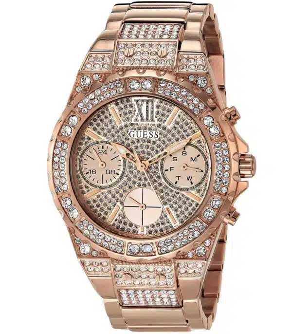 Montre pour Femme de la Marque : Guess – Référence : GW0037L3 – Fonctionnalités : Chronographe – Mouvement : Quartz – Matière du boîtier : Acier inoxydable – Diamètre du boîtier : 38 mm – Matière du bracelet : Acier inoxydable – Largeur du bracelet : 20 mm – Type de verre : Minéral – Garantie