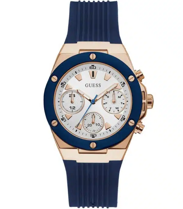 Montre pour Femme de la Marque : Guess – Référence : GW0030L5 – Fonctionnalités : Chronographe – Mouvement : Quartz – Matière du boîtier : Acier inoxydable – Diamètre du boîtier : 39 mm – Matière du bracelet : Silicone – Largeur du bracelet : 18 mm – Type de verre : Minéral – Garantie : 2 ans Livré