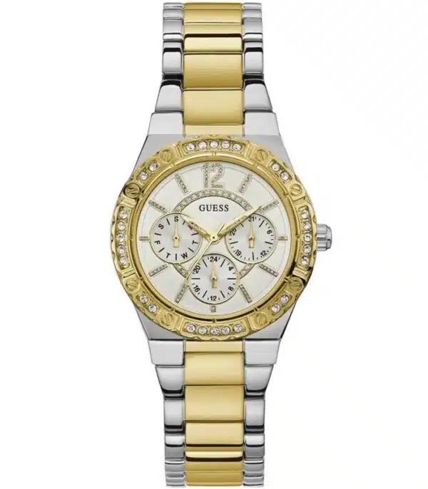 Montre pour Femme de la Marque : Guess – Référence : W0845L5 – Fonctionnalités : Chronographe – Mouvement : Quartz – Matière du boîtier : Acier inoxydable – Diamètre du boîtier : 36 mm – Matière du bracelet : Acier inoxydable – Largeur du bracelet : 18 mm – Type de verre : Minéral –