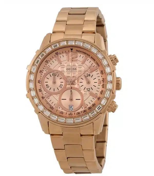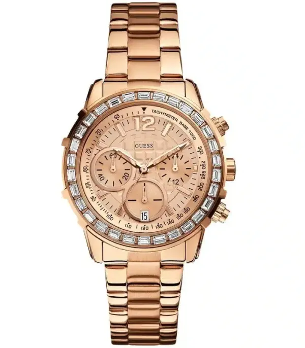 Montre pour Femme de la Marque : Guess – Référence : W0016L5 – Fonctionnalités : Chronographe – Mouvement : Quartz – Matière du boîtier : Acier inoxydable – Diamètre du boîtier : 40 mm – Matière du bracelet : Acier inoxydable– Largeur du bracelet : 20 mm – Type de verre : Minéral – Garantie : 2 ans Livré