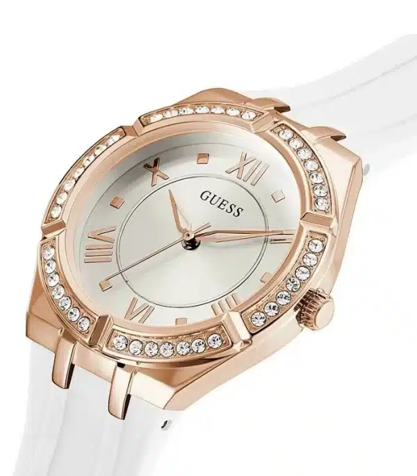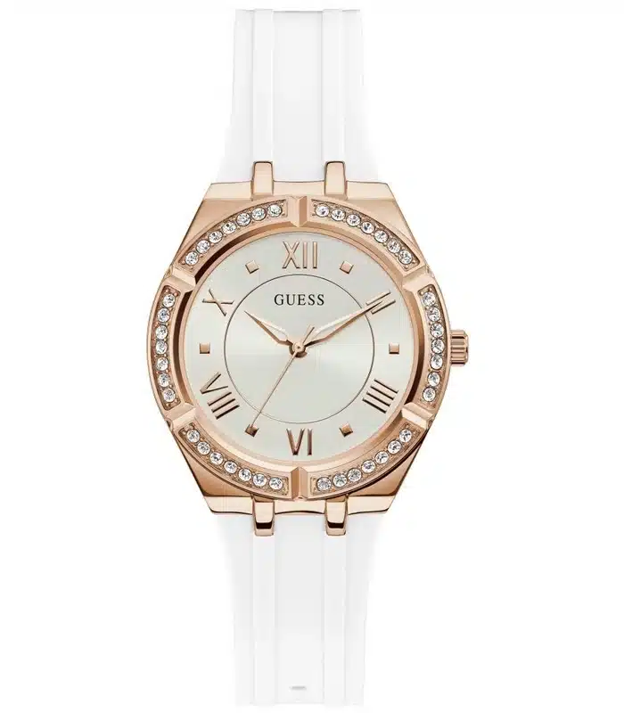 Montre pour Femme de la Marque : Guess – Référence : GW0034L2 – Fonctionnalités : Analogique – Mouvement : Quartz – Matière du boîtier : Acier inoxydable – Diamètre du boîtier : 36 mm – Matière du bracelet : Silicone – Largeur du bracelet : 15 mm – Type de verre : Minéral – Garantie : 2 ans
