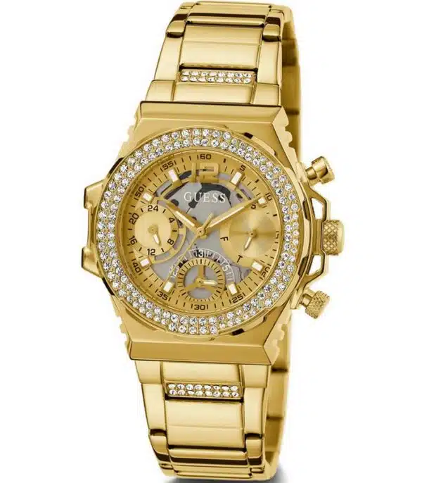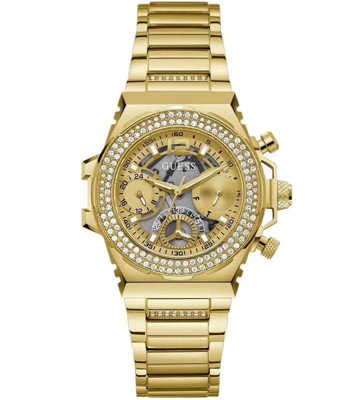Montre pour Femme de la Marque : Guess – Référence : GW0552L2 – Fonctionnalités : Chronographe – Mouvement : Quartz – Matière du boîtier : Acier inoxydable – Diamètre du boîtier : 36  mm – Matière du bracelet : Acier inoxydable – Largeur du bracelet : 22 mm – Type de verre : Minéral – Garantie : 2