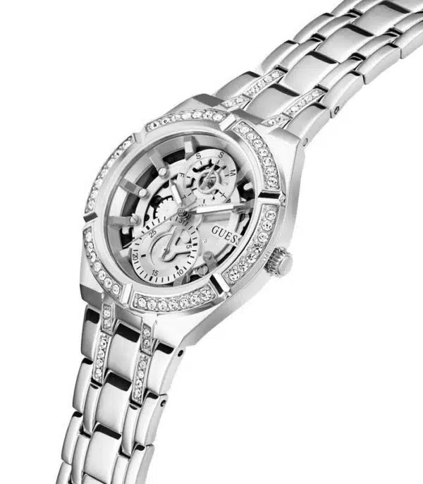 Montre pour Femme de la Marque : Guess – Référence : GW0604L1 – Fonctionnalités : Chronographe – Mouvement : Quartz – Matière du boîtier : Acier inoxydable – Diamètre du boîtier : 36 mm – Matière du bracelet : Acier inoxydable – Largeur du bracelet : 20 mm – Type de verre : Minéral – Garantie : 2 ans