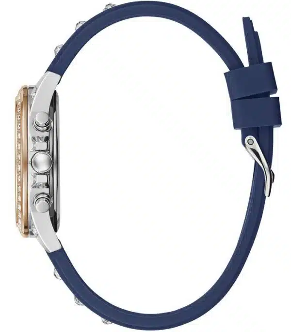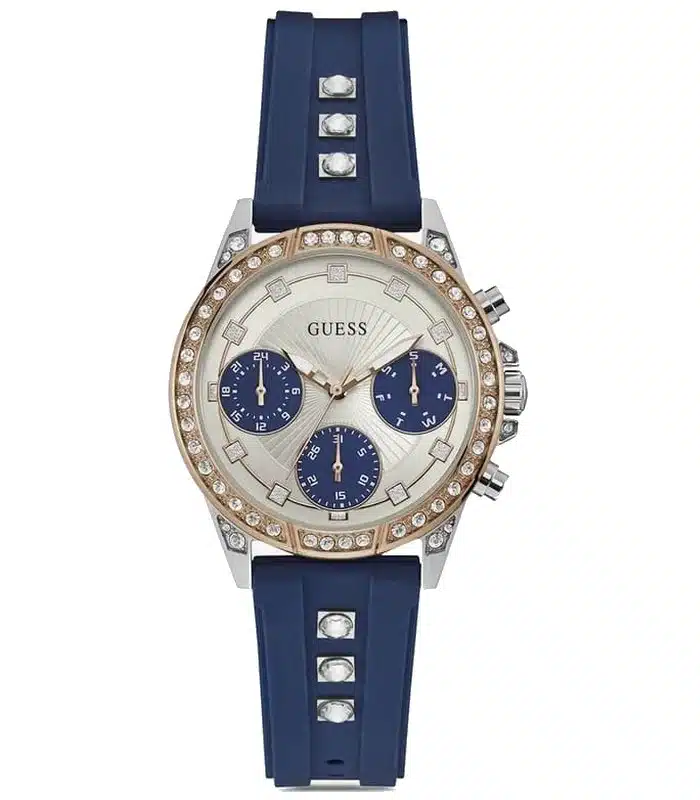 Montre pour Femme de la Marque : Guess – Référence : W1292L2 – Fonctionnalités : Chronographe – Mouvement : Quartz – Matière du boîtier : Acier inoxydable – Diamètre du boîtier : 36 mm – Matière du bracelet : Silicone – Largeur du bracelet : 18 mm – Type de verre : Minéral – Garantie : 2 ans