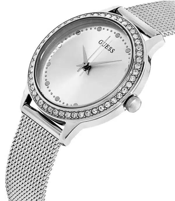 Montre pour Femme de la Marque : Guess – Référence : W0647L6 – Fonctionnalités : Analogique – Mouvement : Quartz – Matière du boîtier : Acier inoxydable – Diamètre du boîtier : 30  mm – Matière du bracelet : Acier inoxydable – Largeur du bracelet : 20 mm – Type de verre : Minéral – Garantie : 2