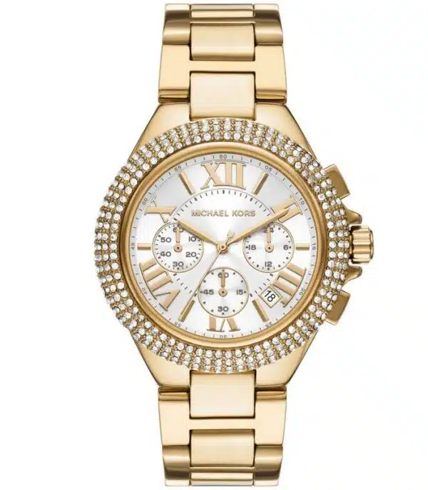 Montre pour Femme de la Marque : Michael Kors – Référence : MK6994 – Fonctionnalités : Chronographe – Mouvement : Quartz – Matière du boîtier : Acier inoxydable – Diamètre du boîtier : 43 mm – Matière du bracelet : Acier inoxydable – Largeur du bracelet : 22 mm – Type de verre : Minéral – Garantie : 2 ans Livré avec son coffret original, sac et certificat d’authenticité.