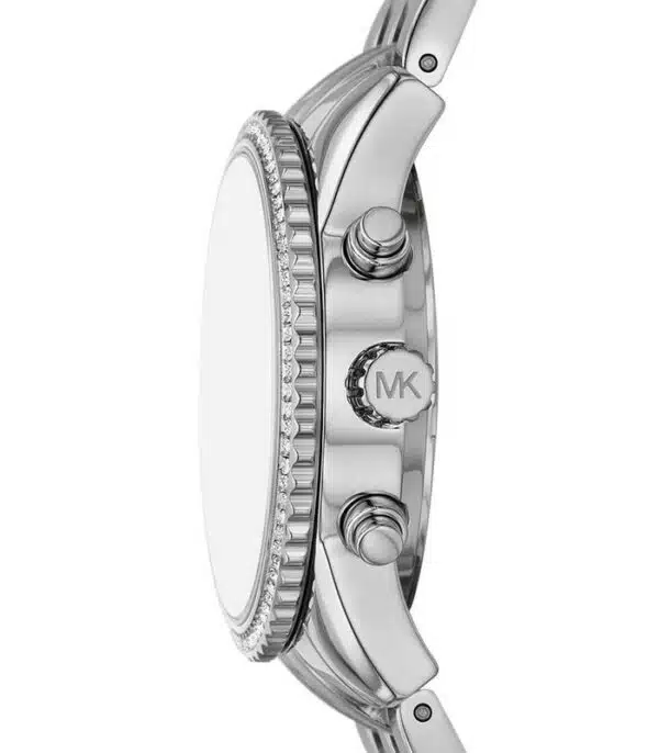 Montre pour Femme de la Marque : Michael Kors – Référence : MK7539 – Fonctionnalités : Chronographe – Mouvement : Quartz – Matière du boîtier : Acier inoxydable – Diamètre du boîtier : 35 mm – Matière du bracelet : Acier inoxydable – Largeur du bracelet : 18 mm – Type de verre : Minéral – Garantie : 2