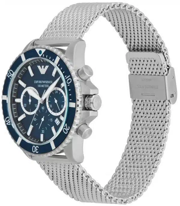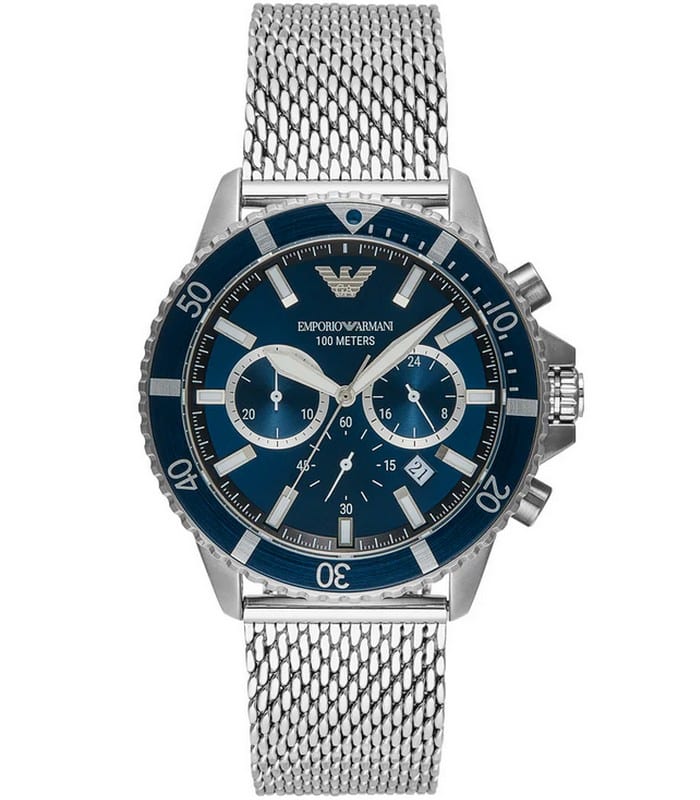 Montre pour Homme de la Marque : Emporio Armani – Référence : AR11587 – Fonctionnalités : Chronographe – Mouvement : Quartz – Matière du boîtier : Acier inoxydable – Diamètre du boîtier : 46 mm – Matière du bracelet : Acier inoxydable – Largeur du bracelet : 24 mm – Type de verre : Minéral – Garantie : 2