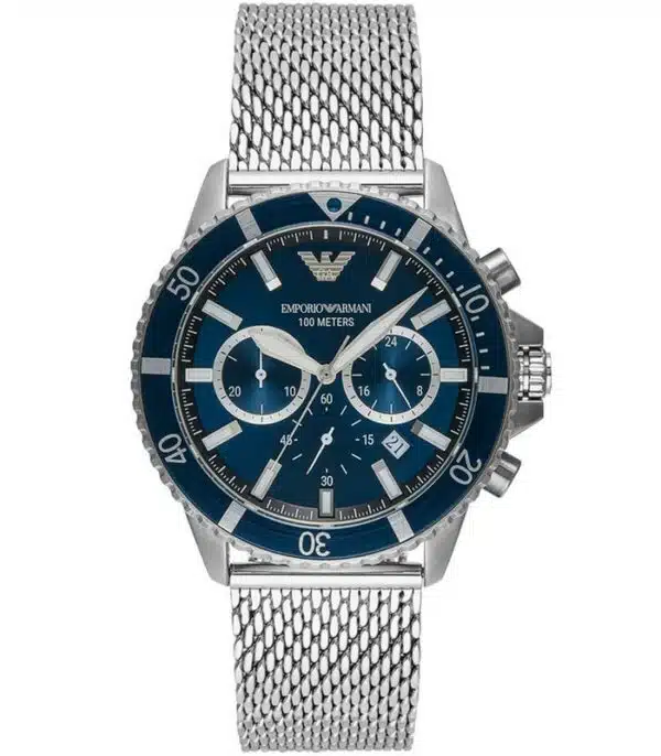Montre pour Homme de la Marque : Emporio Armani – Référence : AR11587 – Fonctionnalités : Chronographe – Mouvement : Quartz – Matière du boîtier : Acier inoxydable – Diamètre du boîtier : 46 mm – Matière du bracelet : Acier inoxydable – Largeur du bracelet : 24 mm – Type de verre : Minéral – Garantie : 2 ans Livré avec son coffret original, sac et certificat d’authenticité.