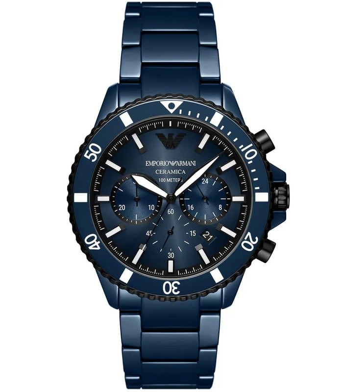 Montre pour Homme de la Marque : Emporio Armani – Référence : AR70009 – Fonctionnalités : Chronographe – Mouvement : Quartz – Matière du boîtier : Acier inoxydable – Diamètre du boîtier : 43 mm – Matière du bracelet : Acier inoxydable – Largeur du bracelet : 22 mm – Type de verre : Minéral – Garantie :