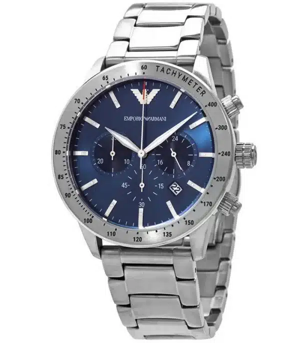 Montre pour Homme de la Marque : Emporio Armani – Référence : AR11306 – Fonctionnalités : Chronographe – Mouvement : Quartz – Matière du boîtier : Acier inoxydable – Diamètre du boîtier : 43 mm – Matière du bracelet : Acier inoxydable – Largeur du bracelet : 22 mm – Type de verre : Minéral – Garantie