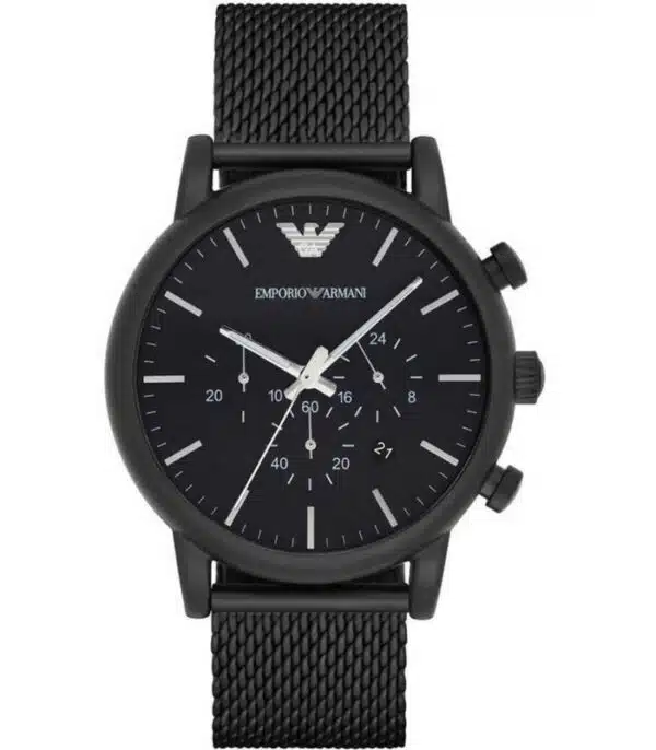 Montre pour Homme de la Marque : Emporio Armani – Référence : AR1968 – Fonctionnalités : Chronographe – Mouvement : Quartz – Matière du boîtier : Acier inoxydable – Diamètre du boîtier : 46 mm – Matière du bracelet : Acier inoxydable – Largeur du bracelet : 22 mm – Type de verre : Minéral – Garantie : 2 ans Livré avec son coffret original, sac et certificat d’authenticité.