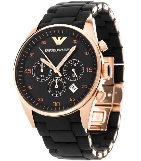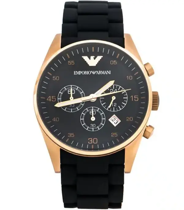 Montre pour Femme de la Marque : Emporio Armani – Référence : AR5905 – Fonctionnalités : Chronographe – Mouvement : Quartz – Matière du boîtier : Acier inoxydable – Diamètre du boîtier : 43 mm – Matière du bracelet : Silicone – Largeur du bracelet : 23 mm – Type de verre : Minéral – Garantie :