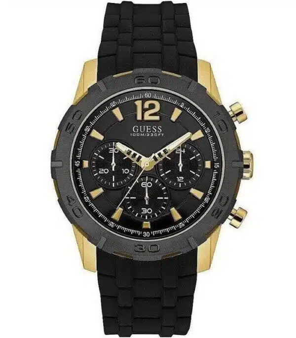 Montre pour Homme de la Marque : Guess – Référence : W0864G3 – Fonctionnalités : Chronographe – Mouvement : Quartz – Matière du boîtier : Acier inoxydable – Diamètre du boîtier : 46 mm – Matière du bracelet : Silicone – Largeur du bracelet : 22 mm – Type de verre : Minéral – Garantie : 2 ans Livré