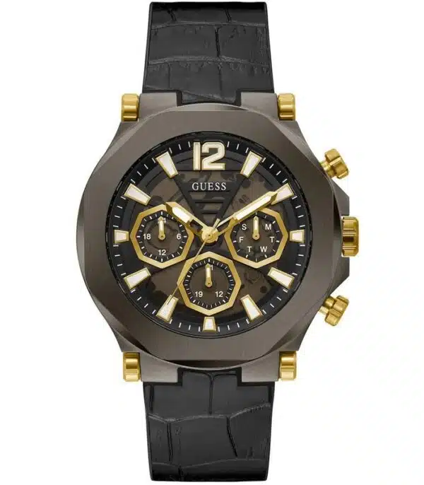Montre pour Homme de la Marque : Guess – Référence : GW0492G1 – Fonctionnalités : Chronographe – Mouvement : Quartz – Matière du boîtier : Acier inoxydable – Diamètre du boîtier : 46 mm – Matière du bracelet : Cuir – Largeur du bracelet : 24 mm – Type de verre : Minéral – Garantie : 2 ans Livré