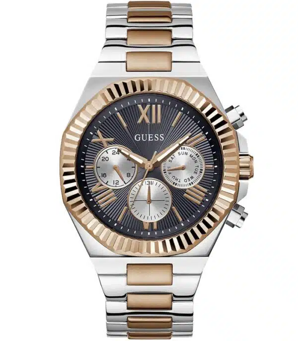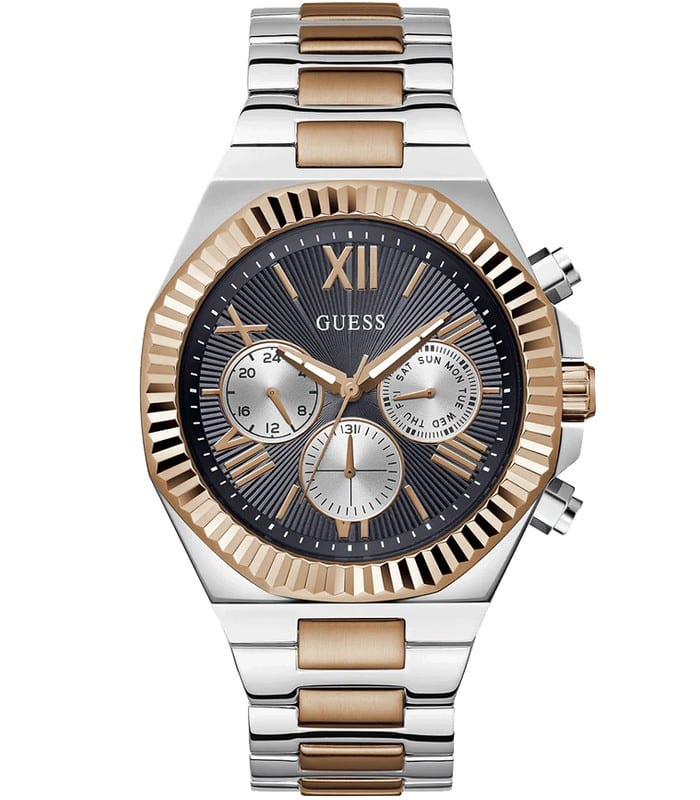 Montre pour Homme de la Marque : Guess – Référence : GW0703G4 – Fonctionnalités : Chronographe – Mouvement : Quartz – Matière du boîtier : Acier inoxydable – Diamètre du boîtier : 44 mm – Matière du bracelet : Acier inoxydable  – Largeur du bracelet : 22 mm – Type de verre : Minéral – Garantie : 2