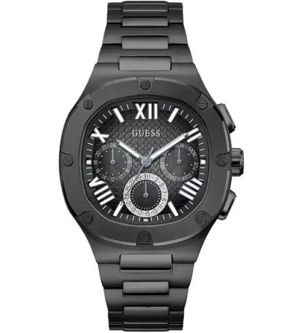 Montre pour Homme de la Marque : Guess – Référence : GW0572G3 – Fonctionnalités : Chronographe – Mouvement : Quartz – Matière du boîtier : Acier inoxydable – Diamètre du boîtier : 42 mm – Matière du bracelet : Acier inoxydable – Largeur du bracelet : 25 mm – Type de verre : Minéral – Garantie : 2 ans