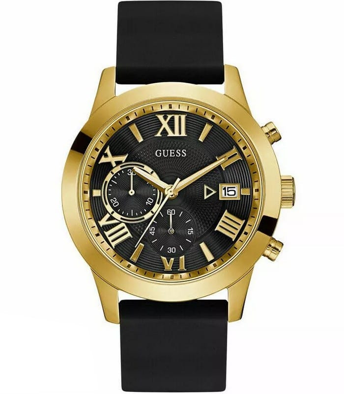 Montre pour Homme de la Marque : Guess – Référence : W1055G4 – Fonctionnalités : Chronographe – Mouvement : Quartz – Matière du boîtier : Acier inoxydable – Diamètre du boîtier : 45 mm – Matière du bracelet : Silicone – Largeur du bracelet : 22 mm – Type de verre : Minéral – Garantie : 2 ans Livré avec son coffret original, sac et certificat d’authenticité.