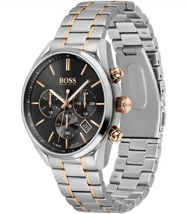 Montre pour Homme de la Marque : Hugo Boss – Référence : HB1513819 – Fonctionnalités : Chronographe – Mouvement : Quartz – Matière du boîtier : Acier inoxydable – Diamètre du boîtier : 44 mm – Matière du bracelet : Acier inoxydable – Largeur du bracelet : 22 mm – Type de verre : Minéral – Garantie :