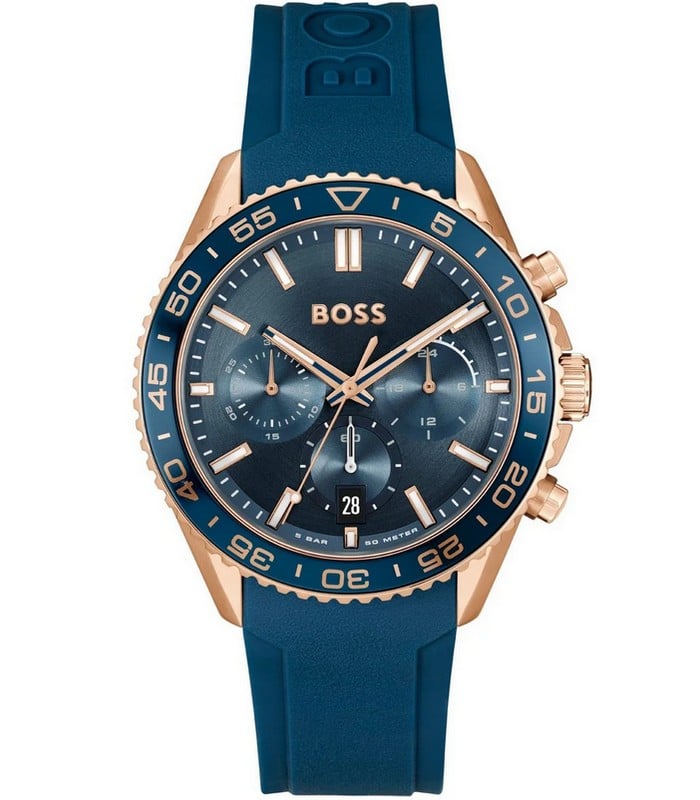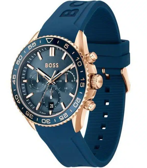 Montre pour Homme de la Marque : Hugo Boss – Référence : HB1514169 – Fonctionnalités : Chronographe – Mouvement : Quartz – Matière du boîtier : Acier inoxydable – Diamètre du boîtier : 44 mm – Matière du bracelet : Silicone – Largeur du bracelet : 22 mm – Type de verre : Minéral – Garantie : 2