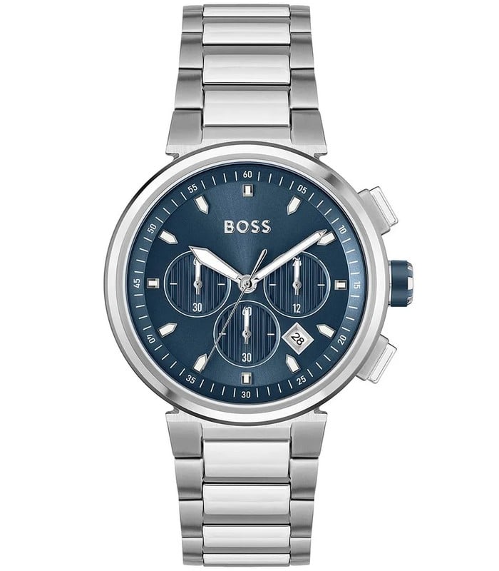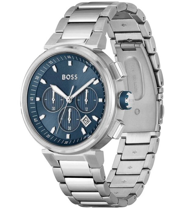 Montre pour Homme de la Marque : Hugo Boss – Référence : HB1513999 – Fonctionnalités : Chronographe – Mouvement : Quartz – Matière du boîtier : Acier inoxydable – Diamètre du boîtier : 44 mm – Matière du bracelet : Acier inoxydable – Largeur du bracelet : 22 mm – Type de verre : Minéral – Garantie : 2