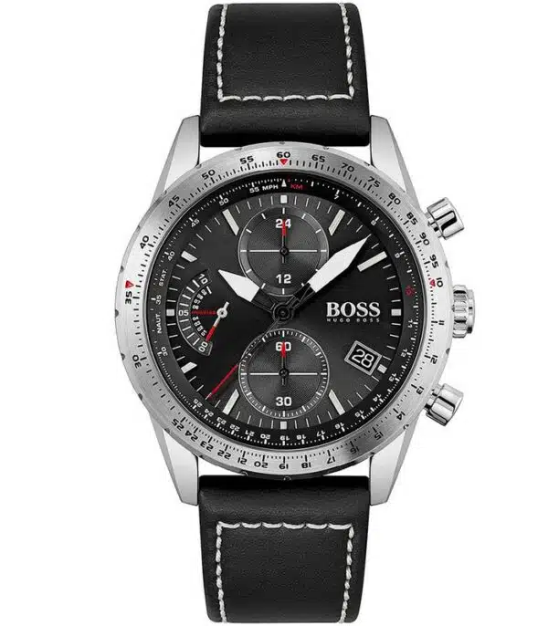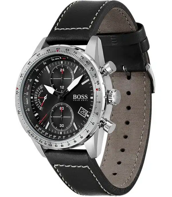Montre pour Homme de la Marque : Hugo Boss – Référence : HB1513853 – Fonctionnalités : Chronographe – Mouvement : Quartz – Matière du boîtier : Acier inoxydable – Diamètre du boîtier : 44 mm – Matière du bracelet : Cuir – Largeur du bracelet : 22 mm – Type de verre : Minéral – Garantie : 2 ans