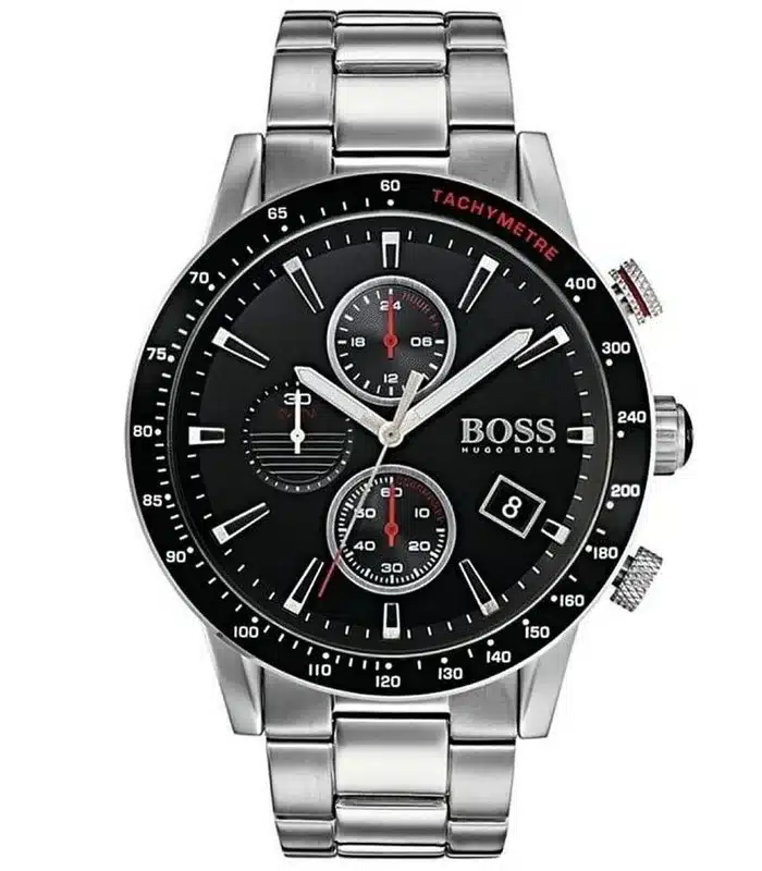 Montre pour Homme de la Marque : Hugo Boss – Référence : HB1513509 – Fonctionnalités : Chronographe – Mouvement : Quartz – Matière du boîtier : Acier inoxydable – Diamètre du boîtier : 44 mm – Matière du bracelet : Acier inoxydable – Largeur du bracelet : 22 mm – Type de verre : Minéral – Garantie : 2