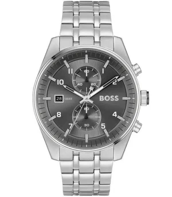 Montre pour Homme de la Marque : Hugo Boss – Référence : HB1514151 – Fonctionnalités : Chronographe – Mouvement : Quartz – Matière du boîtier : Acier inoxydable – Diamètre du boîtier : 44 mm – Matière du bracelet : Acier inoxydable – Largeur du bracelet : 20 mm – Type de verre : Minéral – Garantie : 2 ans Livré avec son coffret original, sac et certificat d’authenticité.
